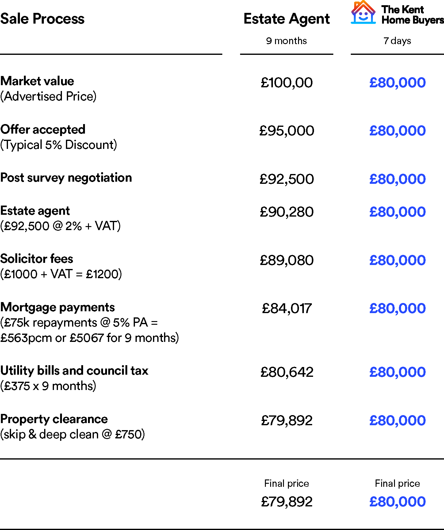 Figures show are based on a typical advertised property price of £100,000 which has come back with a RICS valuation of no less than £100,000 and the legal work and searches has shown that there are no issues in relation to the property or its title. We would be able to pay up to 80% of the valuation if the property is in ‘grade A’ condition, of standard construction and is located in an area with average or above market conditions.